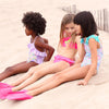 Bikini av polyamid og elastan. Topp med 1 tynn stropp og 1 volangrem, paljettillustrasjon foran. Bunn med volanger. 80% polyamide, 20% elastane