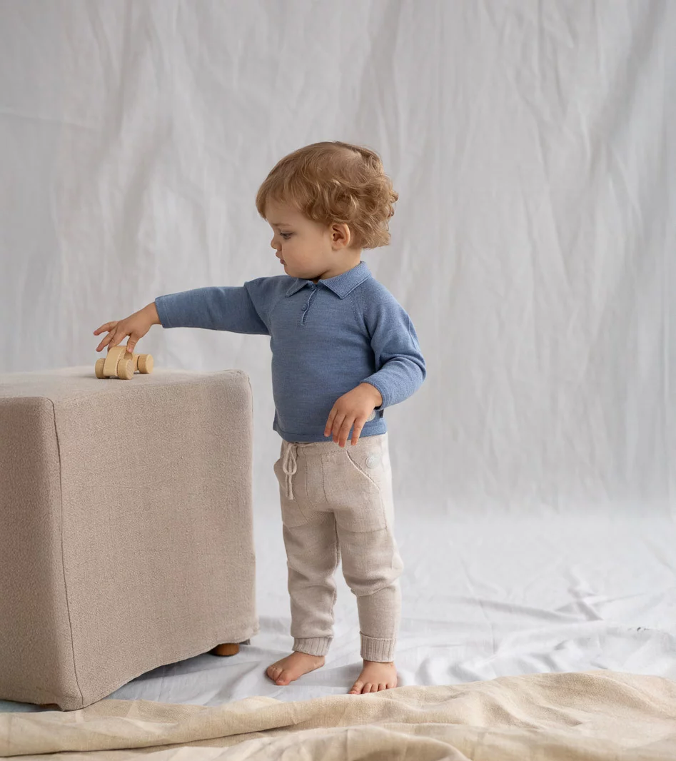 Genser med krage – myk, klassisk og tidløs ullfavoritt. En nydelig og lett genser med klassisk krage og elegant uttrykk. Genseren er laget i100 % ekstra fin merinoull som føles myk og behagelig mot huden – perfekt for sensitivbarnehud. Den har praktiske knapper i halsen som gjør påkledning enklere.