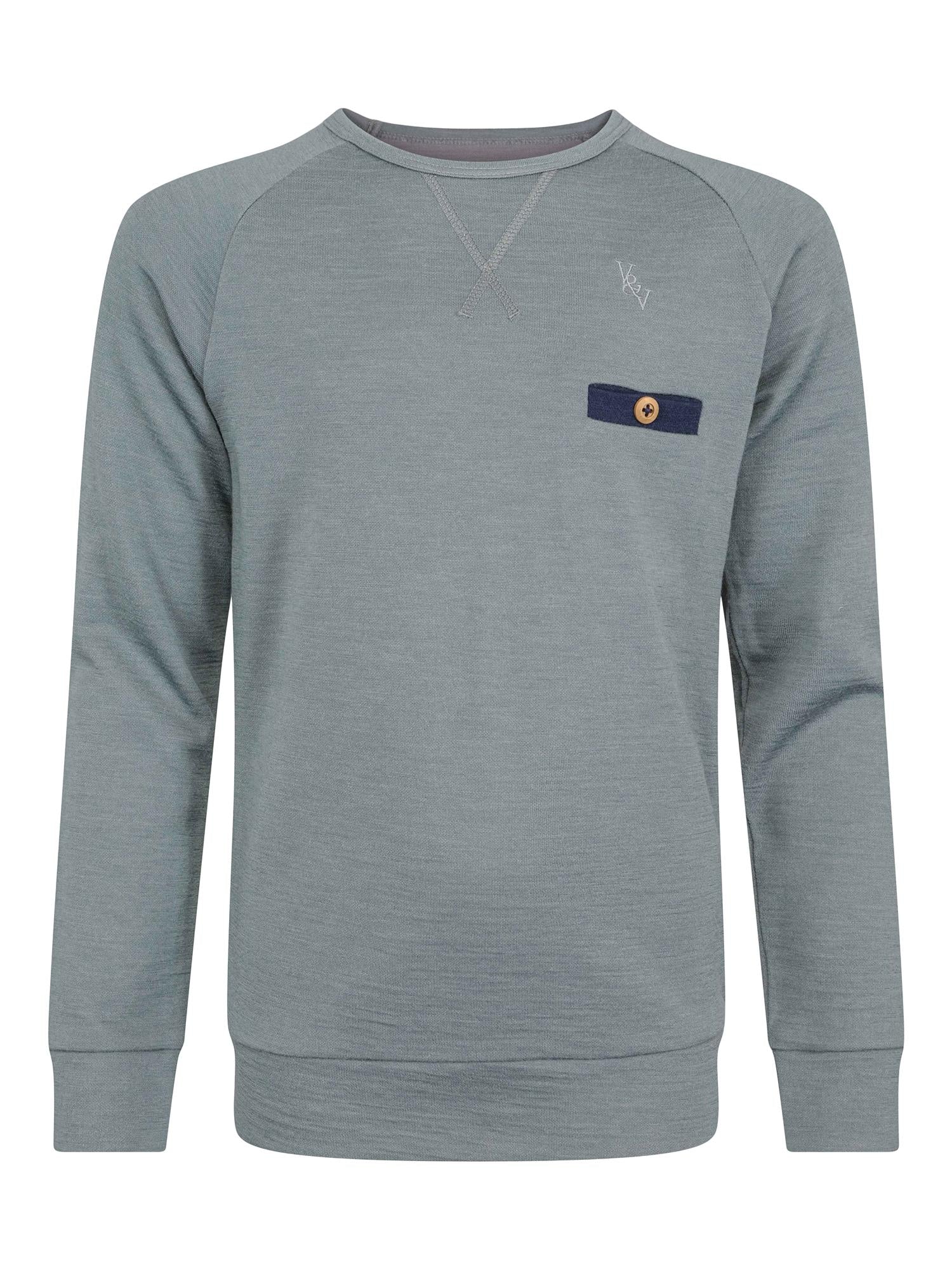 Denne komfortable genseren er laget i samme funksjonelle blanding som marineblåversjonen, og kommer her i en frisk grønnfarge med en kontrastlomme i navy på brystet. Perfekt for barn i aktivitet – varm, pustende og slitesterk. 50% merinoull, 45% bambus av viscose, 5% Nylon